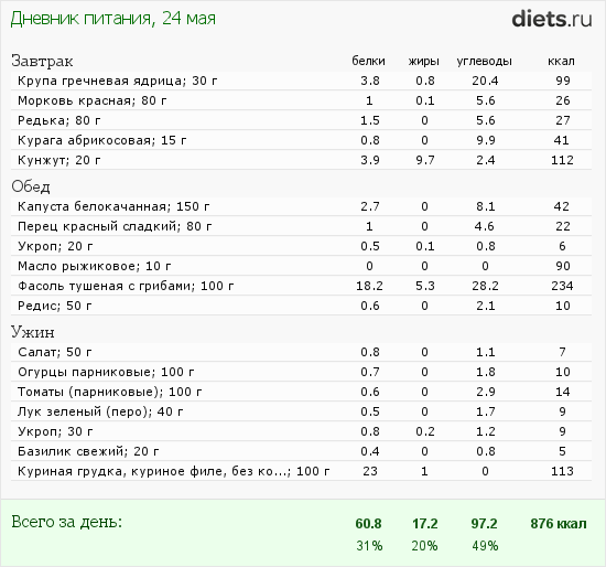 Привет, всем ! Можно я немного сунусь про информативность Диетса ? Я не совсем согласная....... если им пользоваться тупо , то да...... картинка глупая получается ! А если немного поработать с другими подобными сайтами и перетащить информацию в диетс в раздел ИЗБРАННОЕ и записывать продукты в последовательности потребления то даже ничего штучка получается..... Только немного потрудится .... и все !